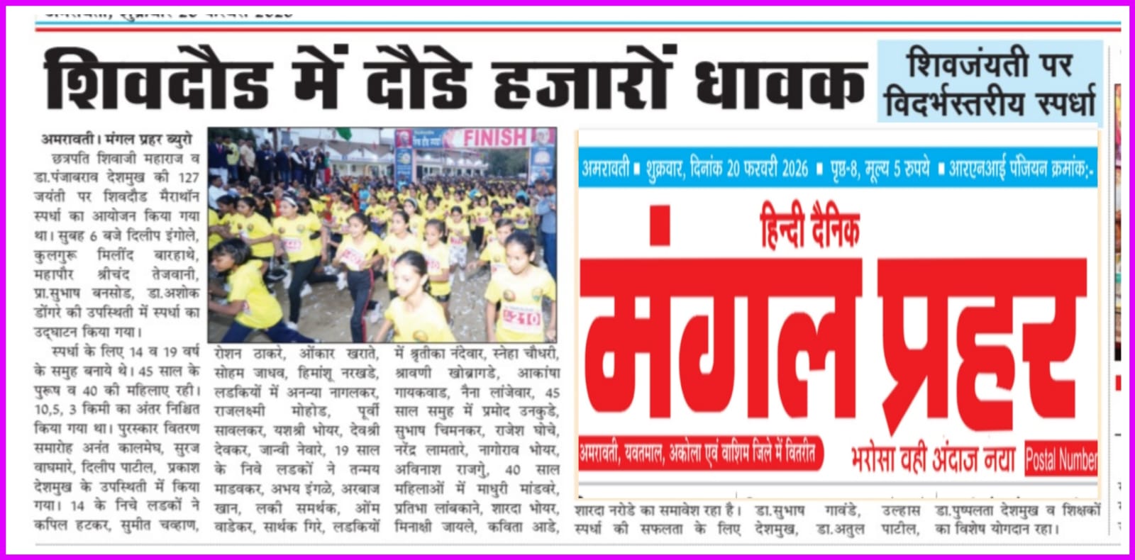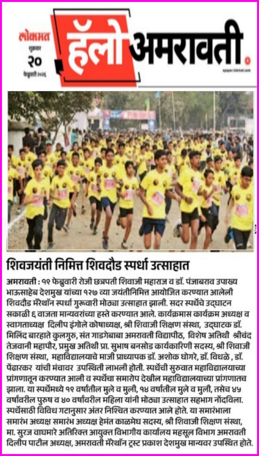 विदर्भस्तरीय शिव दौड मैराथॉन १९ को