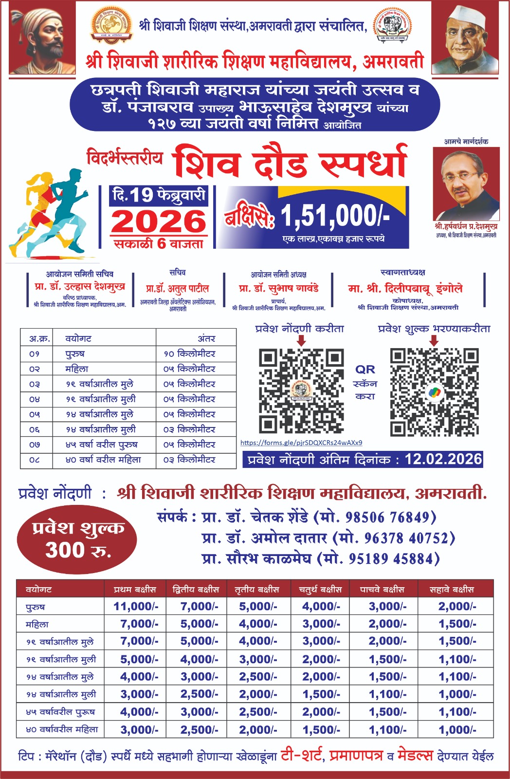 Shri Shivaji College of Physical Education is one of the leading academic and dynamic institution of Shri Shivaji Education Society, Amravati in Vidarbha region of Maharashtra State. It was established in 1960. But considering the importance of Physical.Education, the Faculty of Physical Edu., was added to it in 1975. read more..