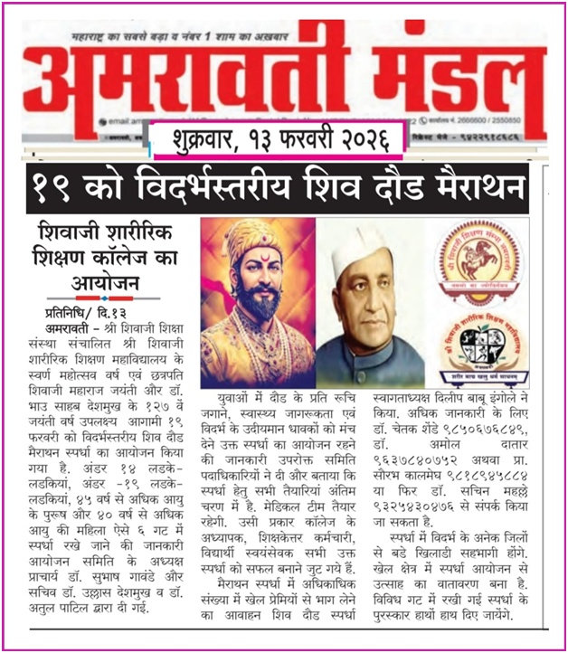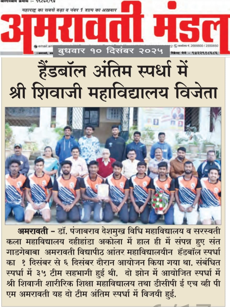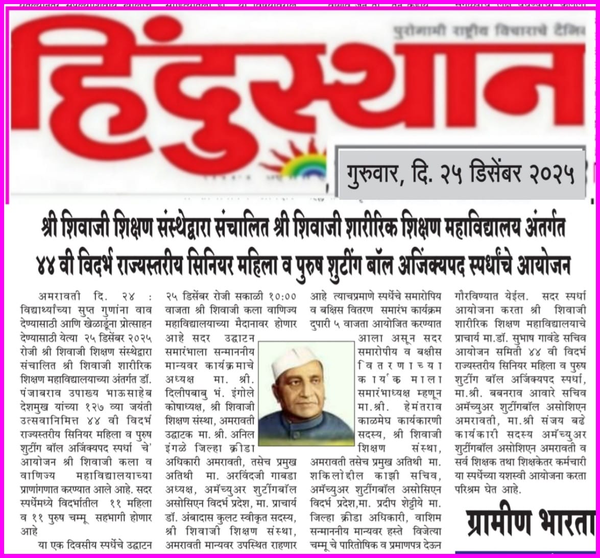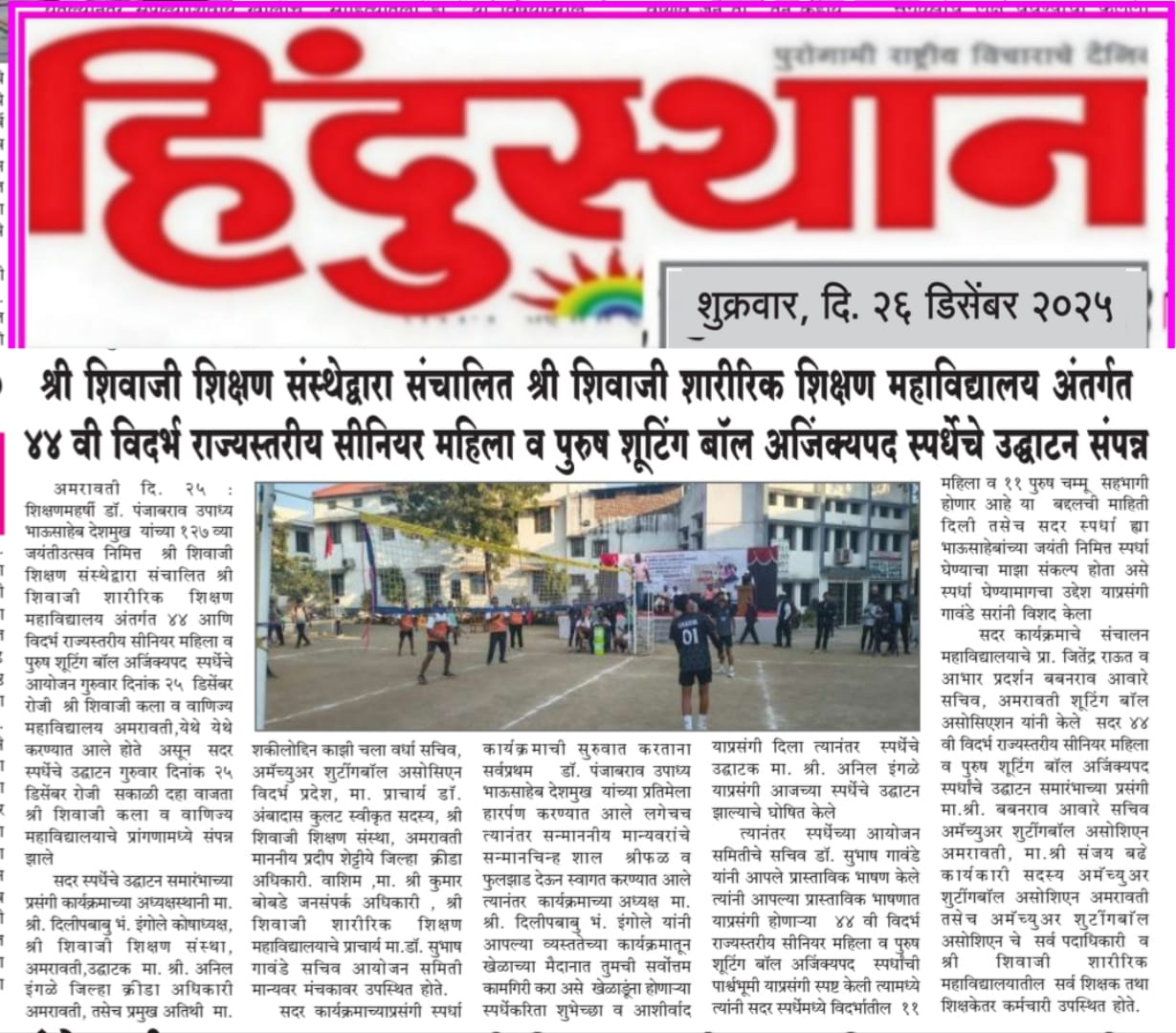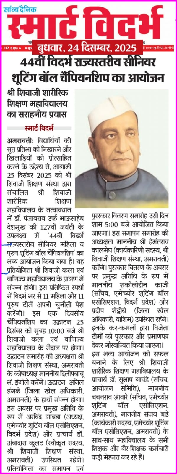 श्री शिवाजी शिक्षण संस्थेद्वारे संचालित श्री शिवाजी शारीरिक शिक्षण महाविद्यालय अंतर्गत ४४ वी विदर्भ राज्यस्तरीयसिनियर महिला व पुरुष शूटिंग बॉल