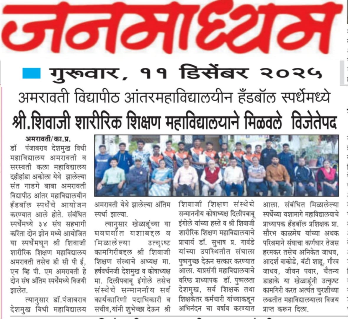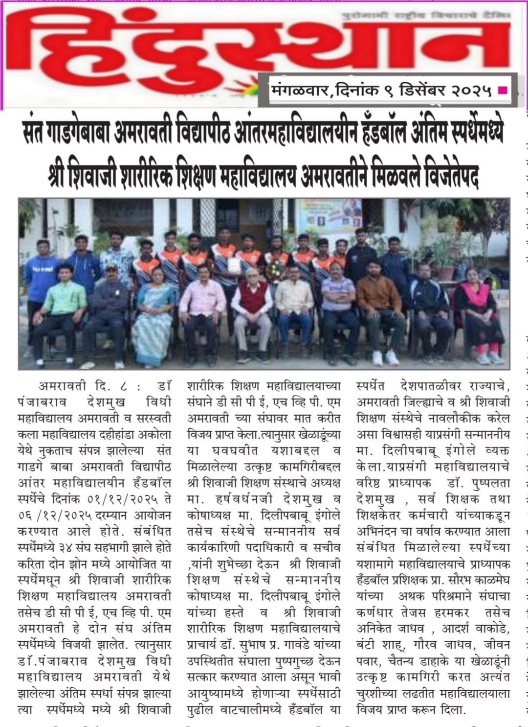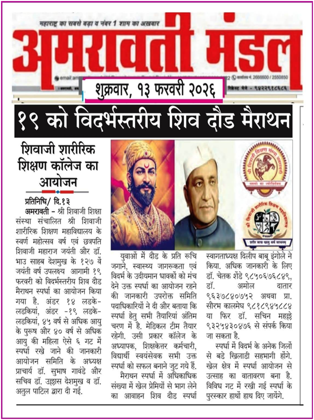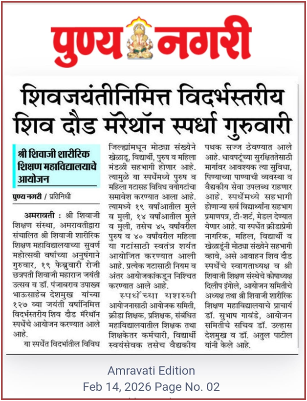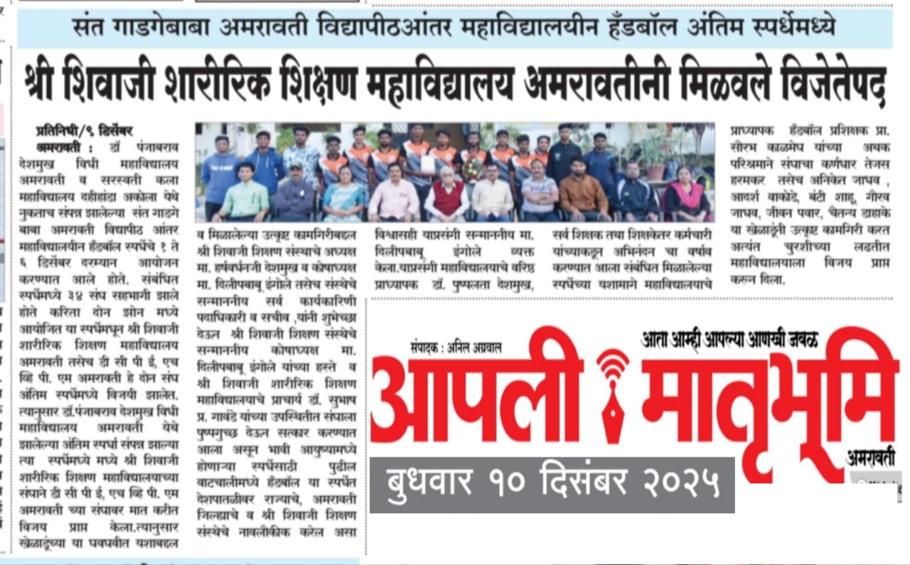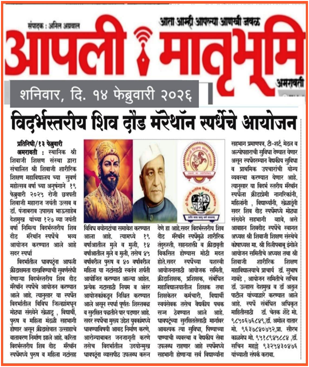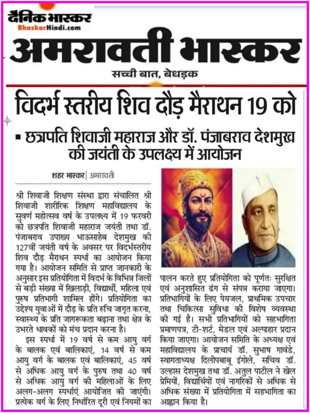 श्री शिवाजी शिक्षण संस्थेद्वारे संचालित श्री शिवाजी शारीरिक शिक्षण महाविद्यालय अंतर्गत ४४ वी विदर्भ राज्यस्तरीयसिनियर महिला व पुरुष शूटिंग बॉल