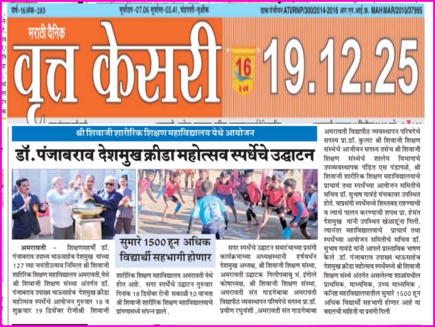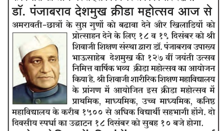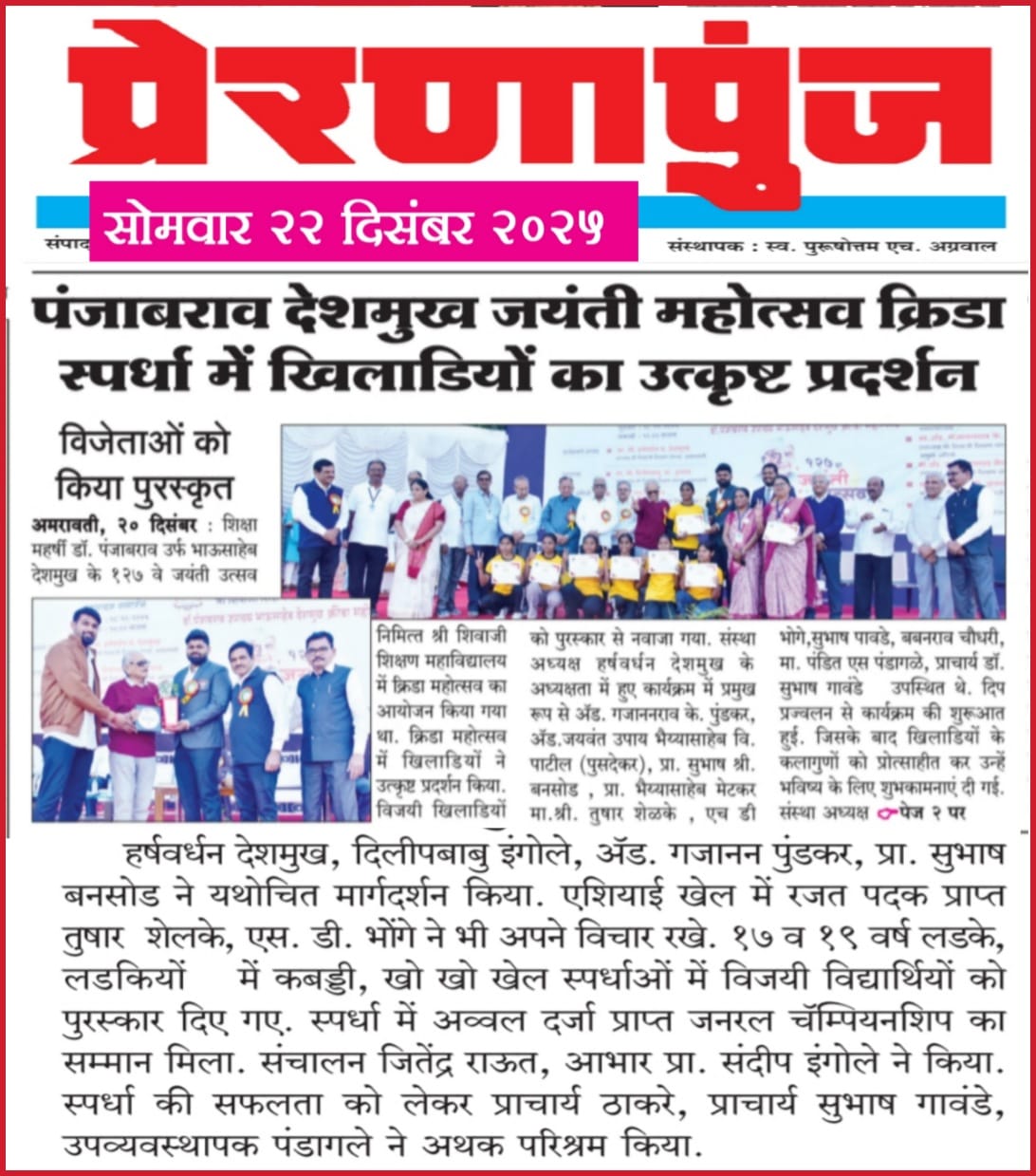 डॉ. पंजाबराव देशमुख जयंती महोत्सव क्रीडा स्पर्धा में खिलाडीयो का उत्कृष्ट प्रदर्शन