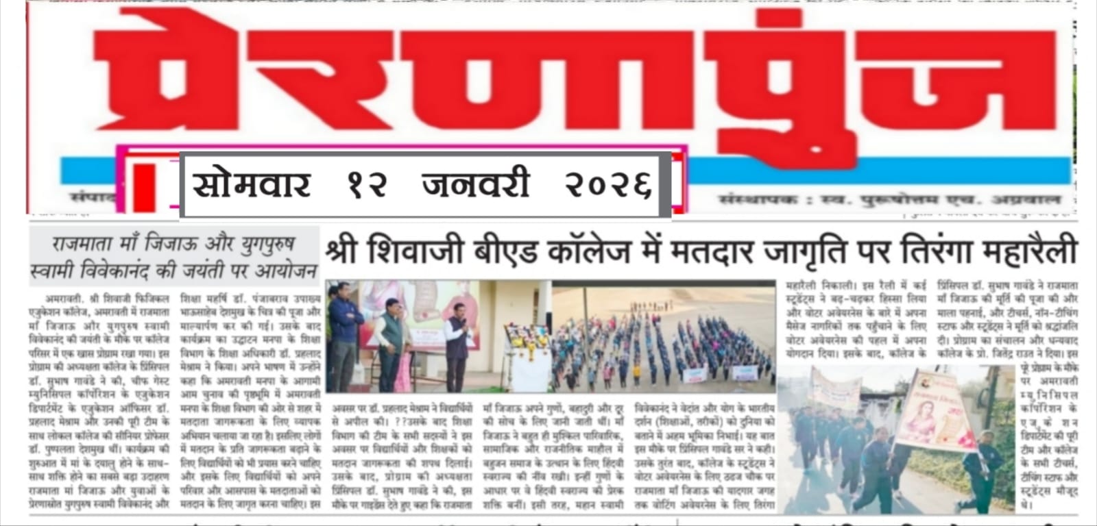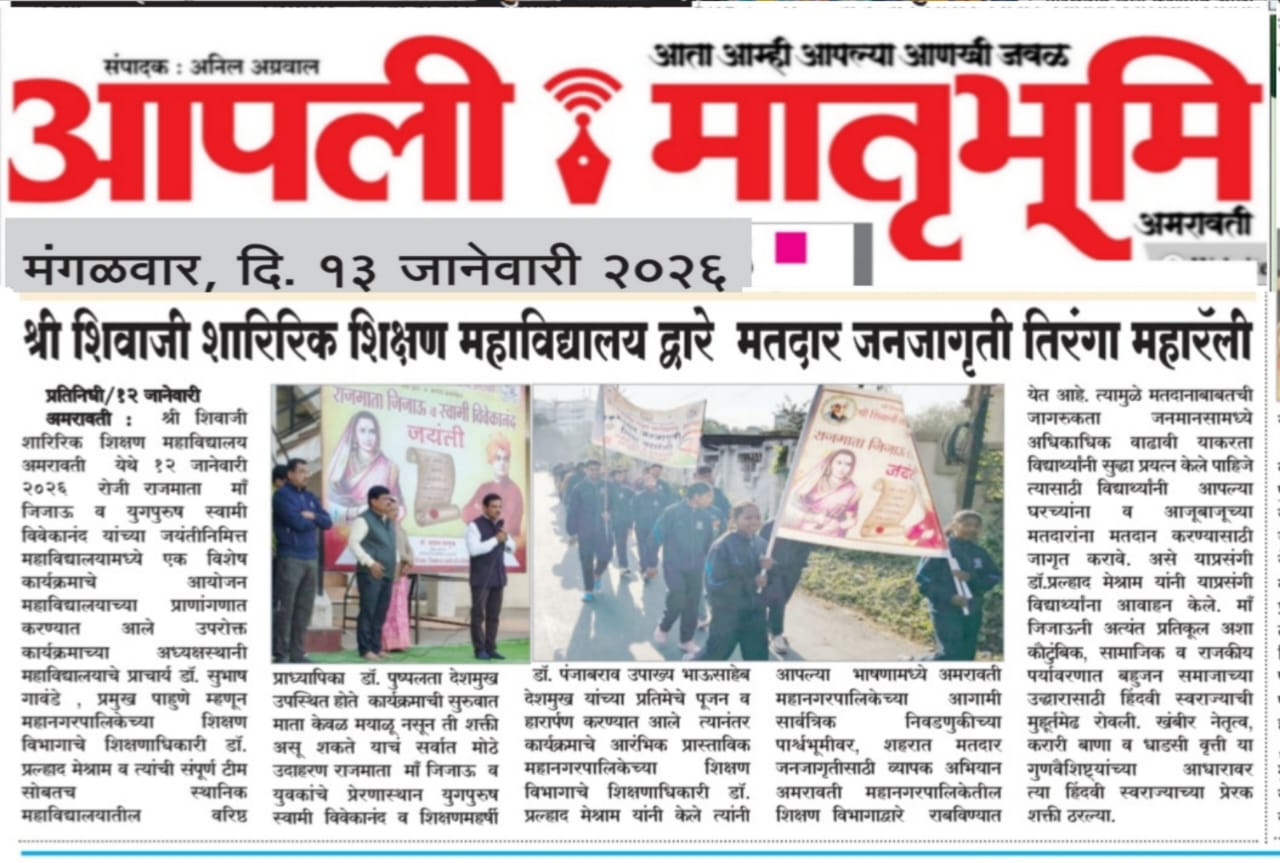 श्री शिवाजी शारीरिक शिक्षण महाविद्यालय द्वारे मतदार जनजागृती तिरंगा महारॅली