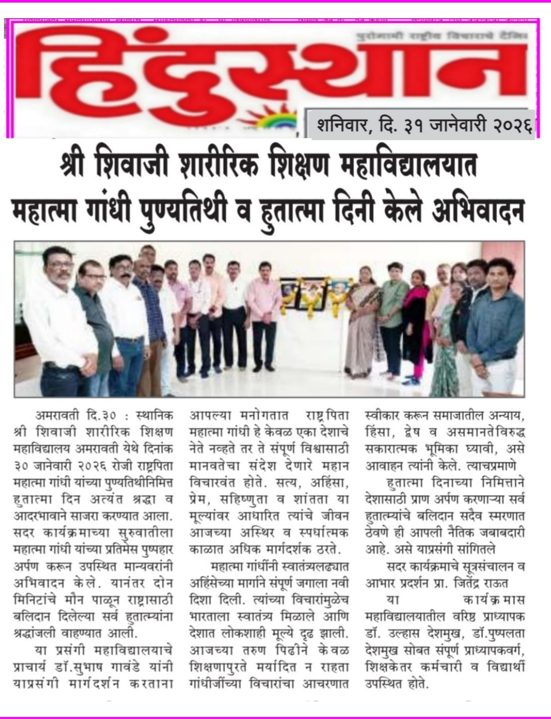 श्री शिवाजी शारीरिक शिक्षण महाविद्यालयात महात्मा गांधी पुण्यतिथी व हुतात्मा दिनी केले अभिवादन