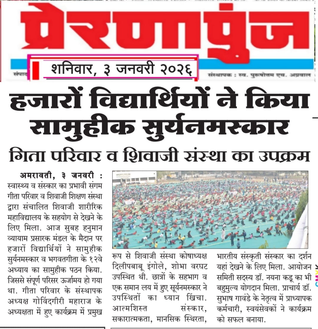 हजारो विध्यार्थीयो ने किया सामुहिक सूर्यनमस्कार