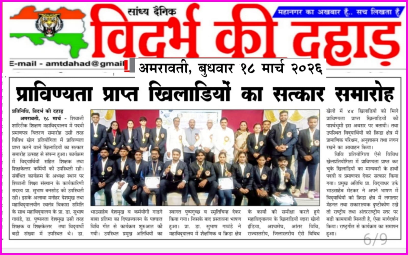 श्री शिवाजी शारीरिक शिक्षण महाविद्यालय, अमरावती येथे पदवी प्रमाणपत्र वितरण व प्रावीण्यप्राप्त खेळाडूंच्या सत्कार समारंभ उत्साहात संपन्न