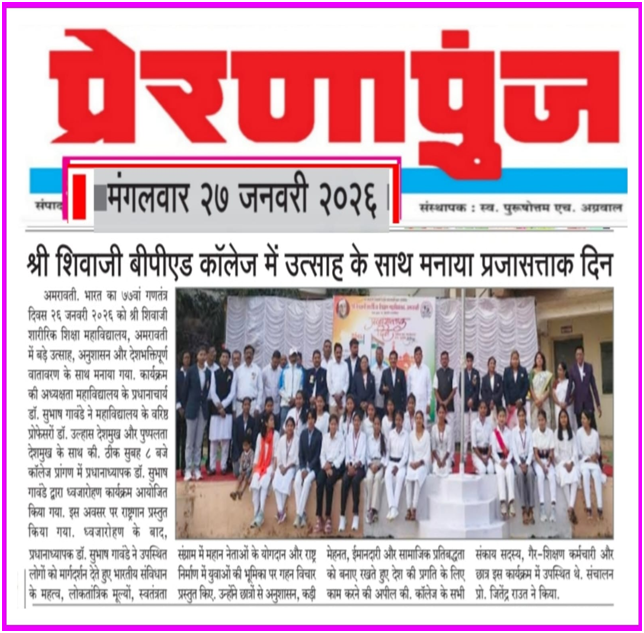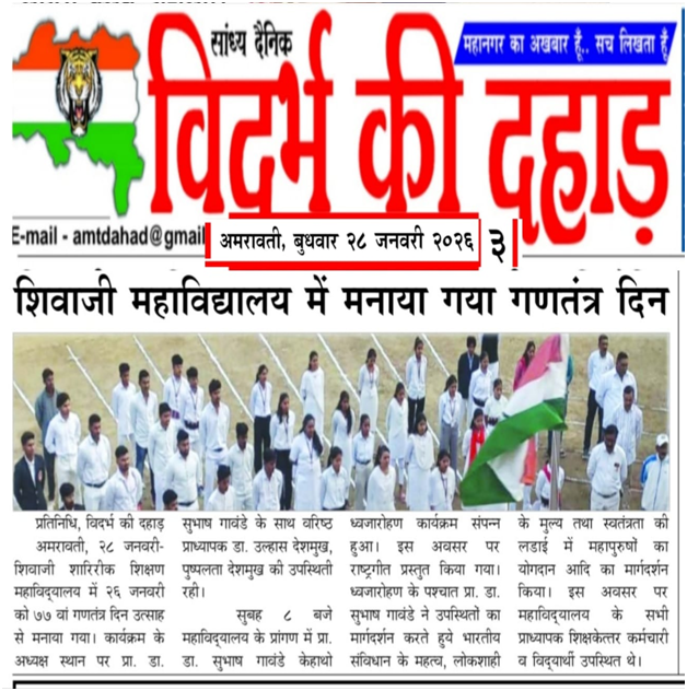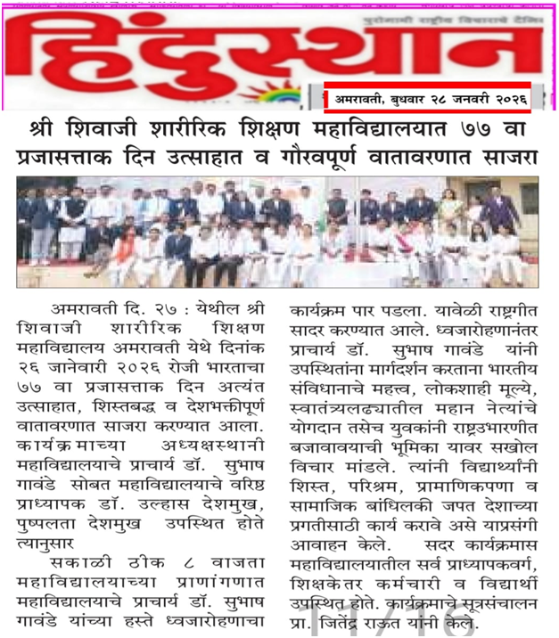 श्री शिवाजी शारीरिक शिक्षण महाविद्यालयात ७७ वा प्रजासत्ताक दिन उत्साहात व गौरवपूर्ण वातावरणात साजरा