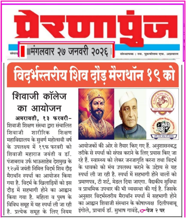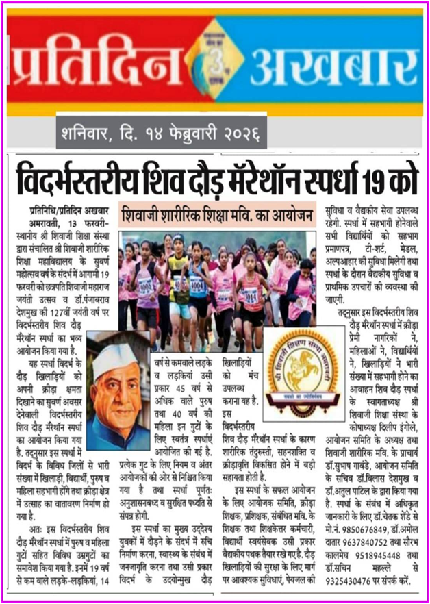 विदर्भस्तरीय शिव दौड मैराथॉन १९ को