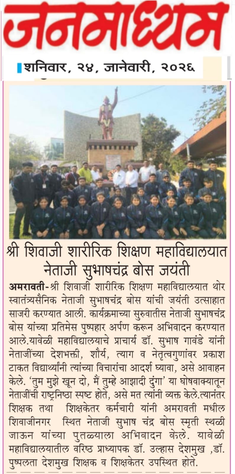 श्री शिवाजी शारीरिक शिक्षा महाविद्यालय में शहीद दिवस और स्वर्गीय रावसाहेब इंगोले कि जयंती मनाई