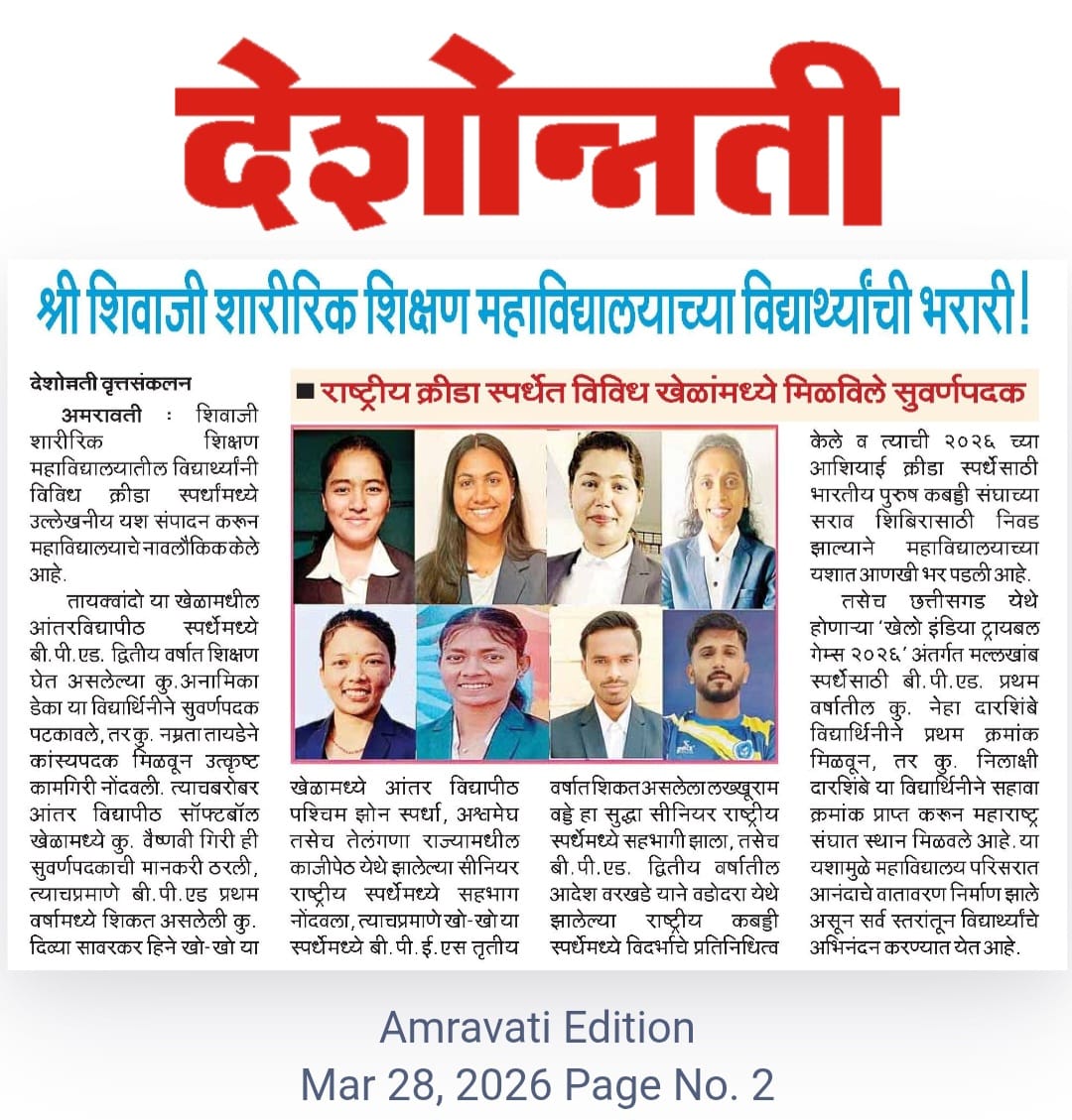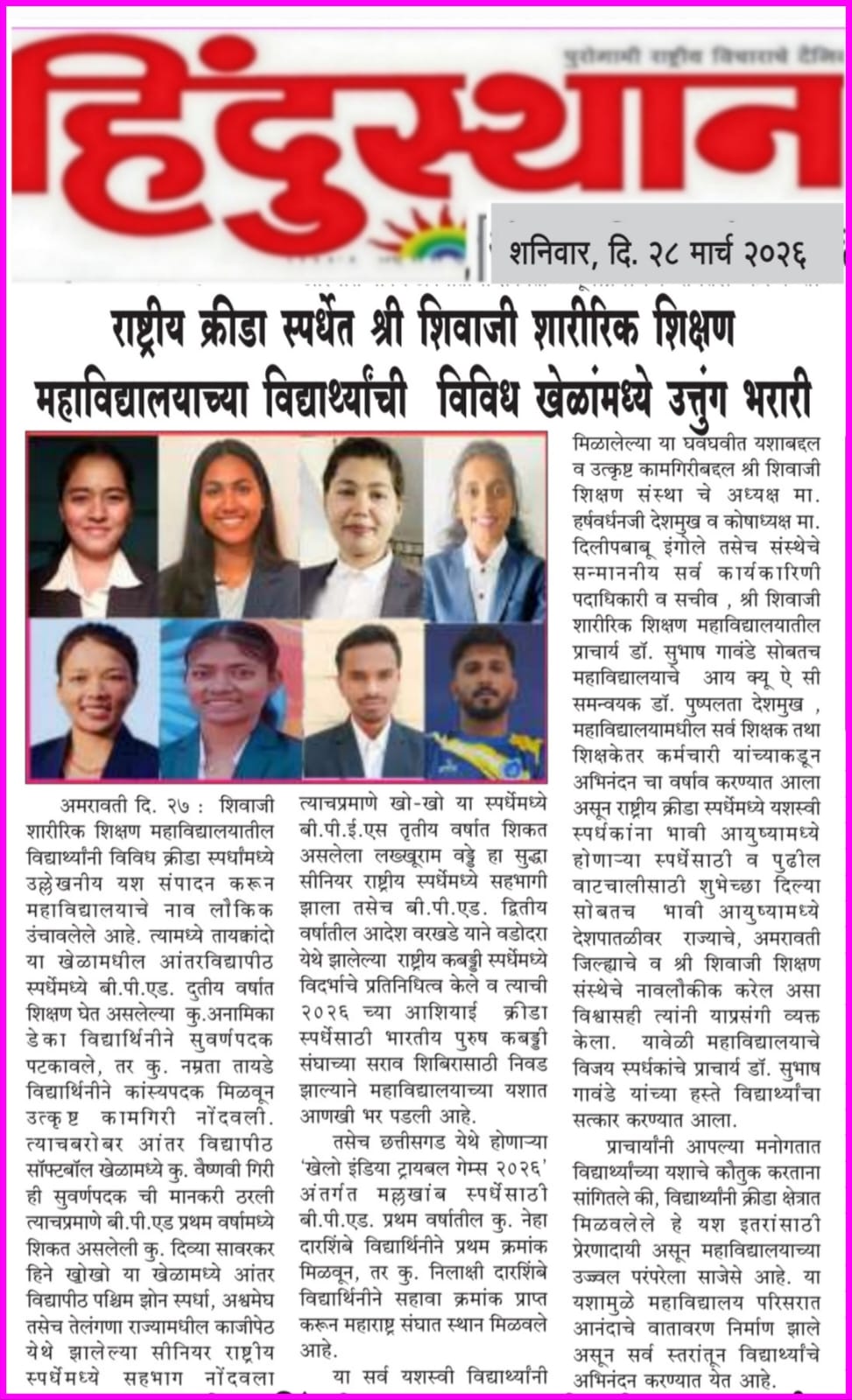 राष्ट्रीय क्रीडा स्पर्धेत श्री शिवाजी शारीरिक शिक्षण महाविद्यालयाच्या विध्यार्थाची विविध खेळांमध्ये उतुंग भरारी