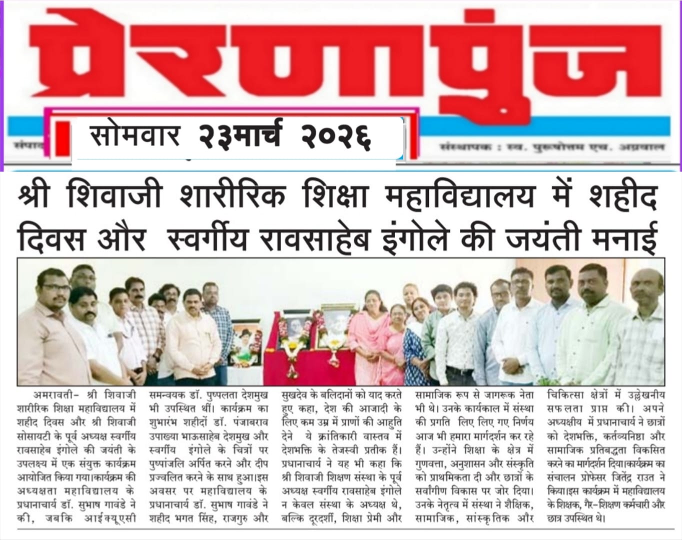 श्री शिवाजी शारीरिक शिक्षा महाविद्यालय में शहीद दिवस और स्वर्गीय रावसाहेब इंगोले कि जयंती मनाई