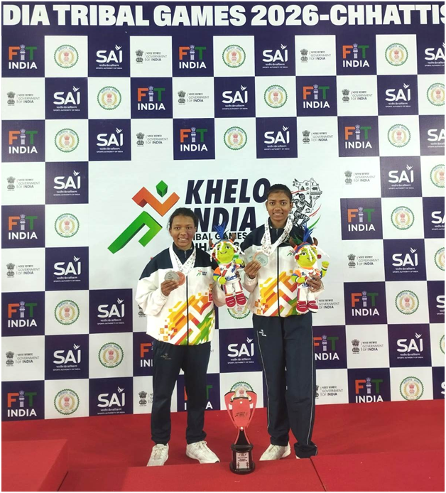 छत्तीसगड येथे ते 03 ते 05 एप्रिल 2026 दरम्यान सुरु असलेल्या खेलो इंडिया ट्रायबल गेम्स 2026 मल्लखांब या क्रीडा प्रकारात श्री शिवाजी शारीरिक शिक्षण महाविद्यालय, अमरावती. बी.पी.एड. प्रथम वर्षीय, विद्यार्थिनी खेळाडू नेहा दारसिंबे व नीलाक्षी दारसिंबे यांनी महाराष्ट्र संघाचे प्रतिनिधित्व केले व महाराष्ट्र संघाला द्वितीय🥈 क्रमांक प्राप्त झाले,तसेच पोल मल्लखांब पिरॅमिड मध्ये द्वितीय🥈 क्रमांक व रोप मल्लखांब पिरॅमिड मध्ये तृतीय🥉 क्रमांक प्राप्त करून महाराष्ट्र संघाने उज्वल कामगिरी केली. याकरिता महाराष्ट्र संघाचे प्रतिनिधित्व केलेल्या आपल्या महाविद्यालयातील दोन्ही बहिणी यांचे हार्दिक अभिनंदन व गेम इन्चार्ज प्रा. डॉ. चेतक शेंडे यांचे सुद्धा खूप खूप अभिनंदन.